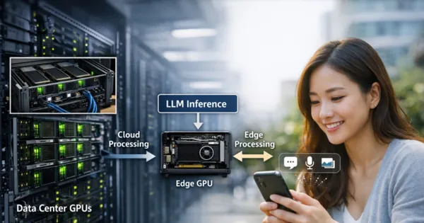 이 기술은 엣지 GPU의 소형 모델이 초안을 빠르게 생성하고 데이터센터의 대규모 모델이 이를 검증 및 수정하는 '추측적 디코딩(Speculative Decoding)' 방식을 통해 LLM 추론 인프라를 효율적으로 구성합니다.