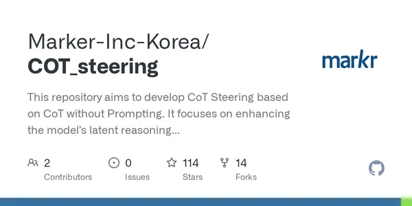 GitHub - Marker-Inc-Korea/COT_steering: This repository aims to develop CoT Steering based on CoT without Prompting. It focuses on enhancing the model’s latent reasoning capability without additional training by leveraging Test-Time Scaling techniques.