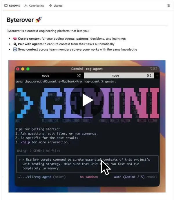 ByteRover는 코딩 에이전트(coding agents)가 방대한 Capture with
