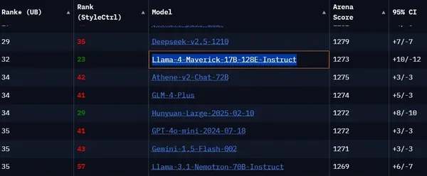 벤치마크 논란을 일으킨 '라마 4' 모델이 초기 높은 순위로 주목받았습니다.