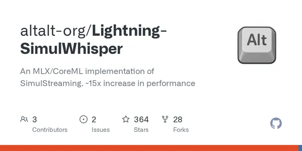 GitHub - altalt-org/Lightning-SimulWhisper: An MLX/CoreML implementation of SimulStreaming. ~15x increase in performance