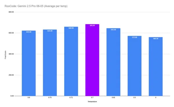 Gemini 2.5 Pro 06-05 버전에서 온도 설정에 따른 성능 차이가 확인됐습니다.