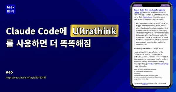 Claude Code에 `Ultrathink` 를 사용하면 더 똑똑해짐 | GeekNews